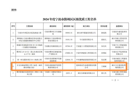 榮獲2024 年度市建筑施工安全生產標準化管理優(yōu)良工地、鄞州區(qū)優(yōu)質工程獎