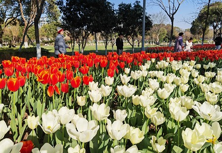 近日,由藍海綠業(yè)養(yǎng)護管理的鄞州區(qū)院士公園內,園內種植的十五萬株郁金香競相開放,迎來好佳觀賞期。園內阿波羅、丹麥、美麗潮流、奶昔、班雅、挪威日出、紅色重瓣、幸福一代等15個不同品種的郁金香在陽光下綻放,美不勝收。